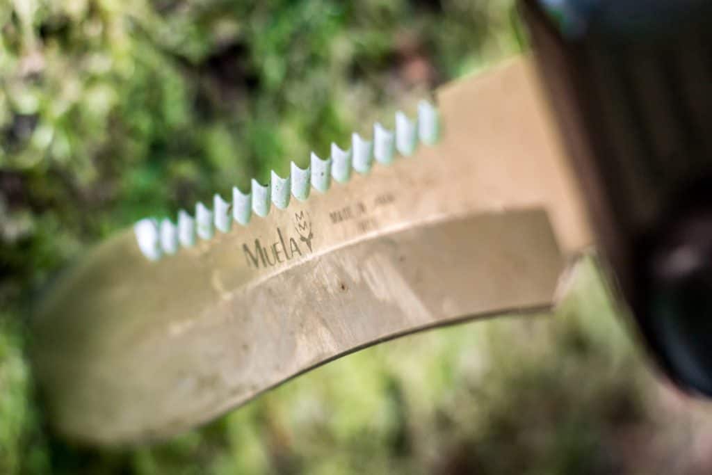 Faktura noża czyli rękojeści oraz ostrza i nacisk na logo marki. W tle jedzenie jako po prostu kolorowe ładne tło. Przyprawy, zioła oraz wszystko co sprawi aby detale oddały zapach, aromat i prze soczysty oraz smaczny wygląd jedzenie. Mielony pieprz, ten w głębi ostrości (nie ma go za wiele) zdecydowanie dodaje “smaku” do fotografii.