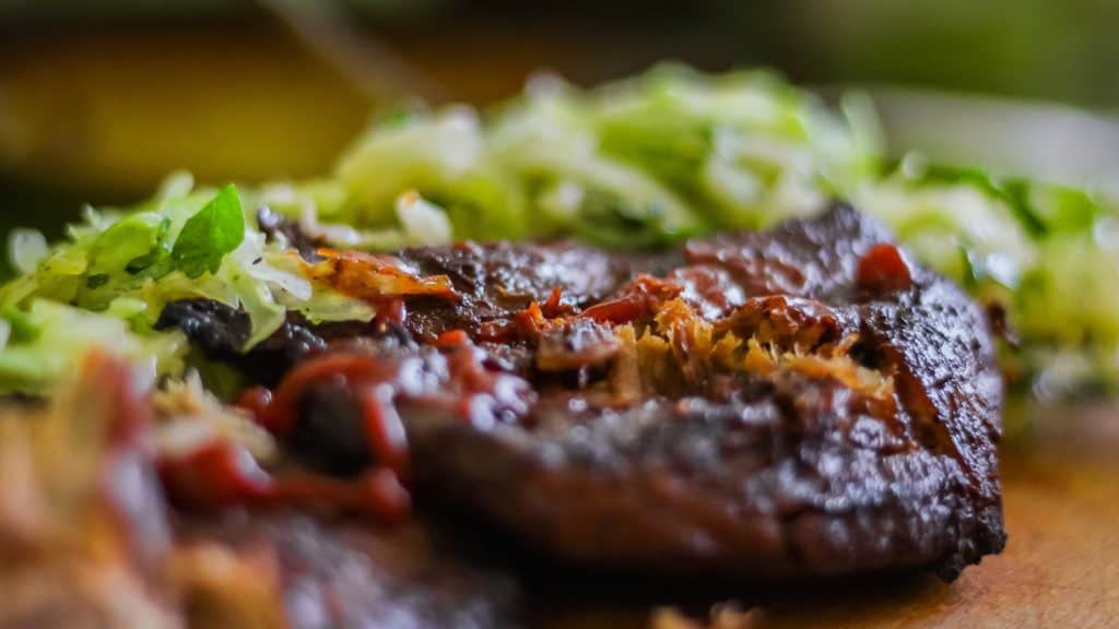Jedzenie ! Nie ma to jak zrobić dwa w jednym czyli wypasiony obiad i fotki produktowe na bloga i shutterstocka 😉 Do tego można dodać zestaw sztućców jeżeli posiadamy, ja w tym przypadku wykorzystałem tylko nóż – dedykowany do mięsa. Mięso przygotowane w sosie czekoladowym 🙂
